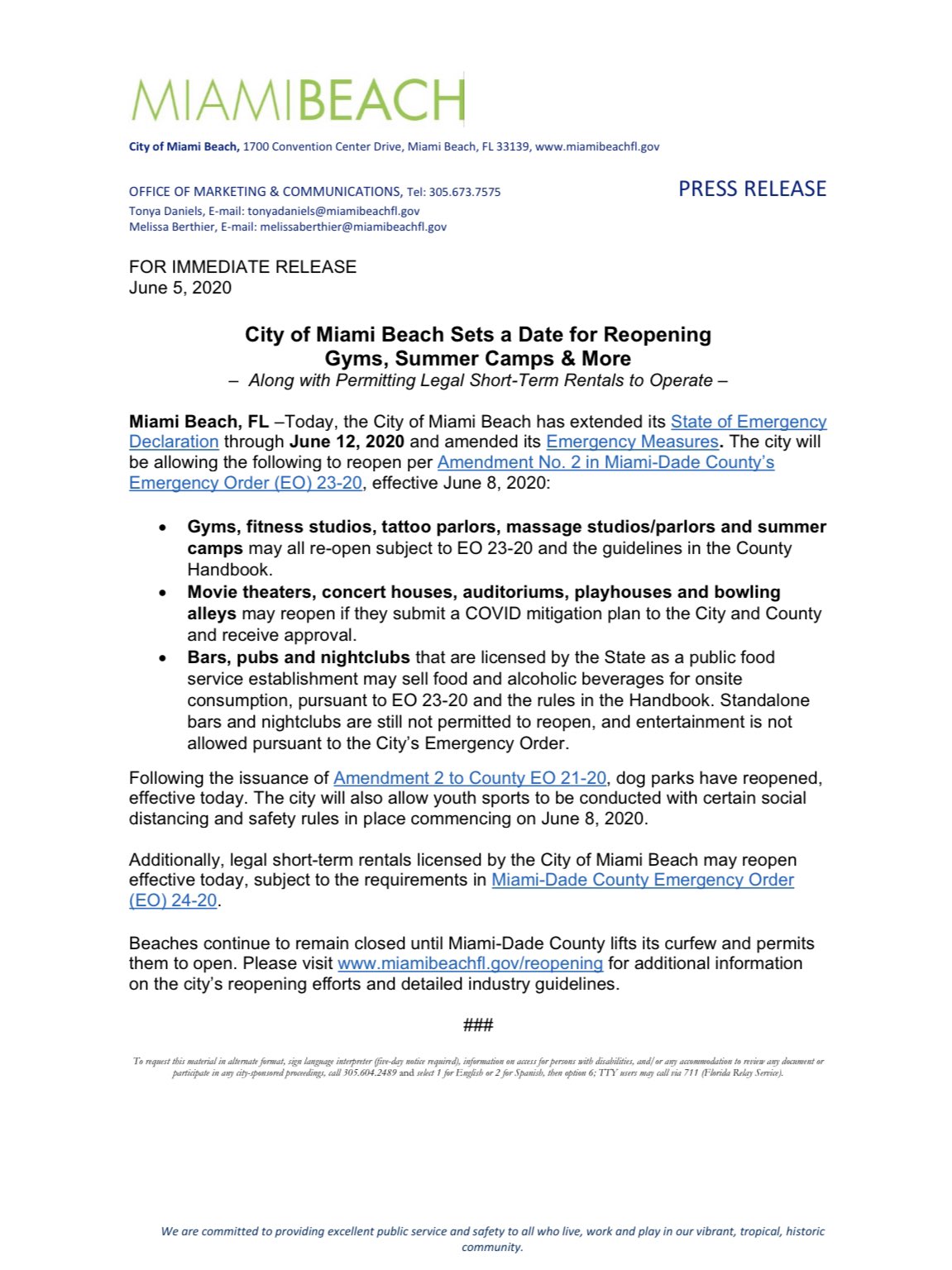 City Of Miami Beach On Twitter City Of Miami Beach Sets A Date For Reopening Gyms Summer Camps Amp More Along With Permitting Legal Short Term Rentals To Operate Https T Co Ct1jmzohyo Https T Co Wtcvwsqjj1